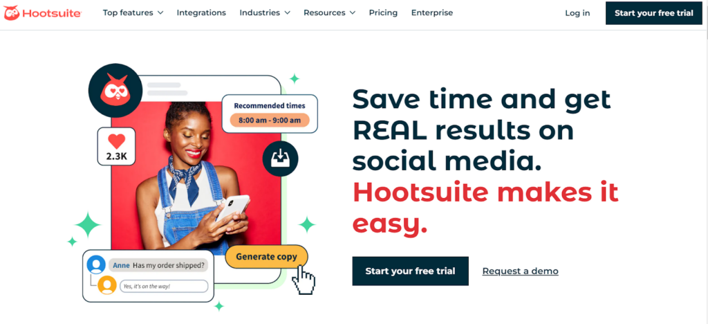 Just like its counterpart Buffer, Hootsuite can help you schedule posts on multiple platforms. It is a fantastic tool if you’re trying to reach potential customers through a variety of platforms. It offers a ton of cutting-edge features to support your social media marketing. For instance, you can create posts in bulk and then arrange a timetable for their sequential posting. With this feature, you can have a multi-channel, consistent social media presence, which can help your business succeed more quickly.