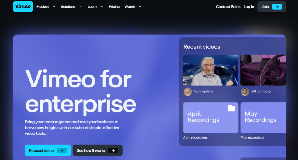 Vimeo is one of the best video marketing and production platforms and an excellent video hosting site. Vimeo Business is its specialized enterprise product, built to facilitate internal communications in a company.