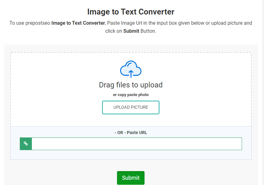 Prepostseo is one of the most famous tools when it comes to optical character recognition. You can upload the image in different forms and all the text is written in that specific file will be extracted and you will be given a normal text file as the result.