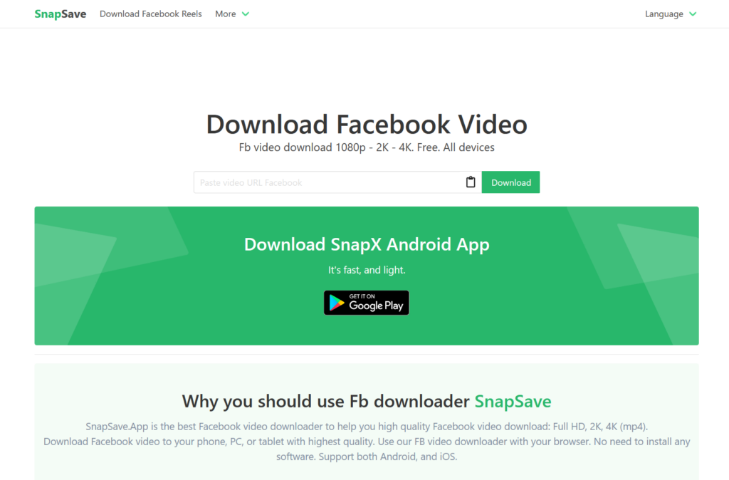 Snapsave is high quality Facebook video downloader. You can download all types of Facebook videos for free. Snapsave also provides a native Android app for free.