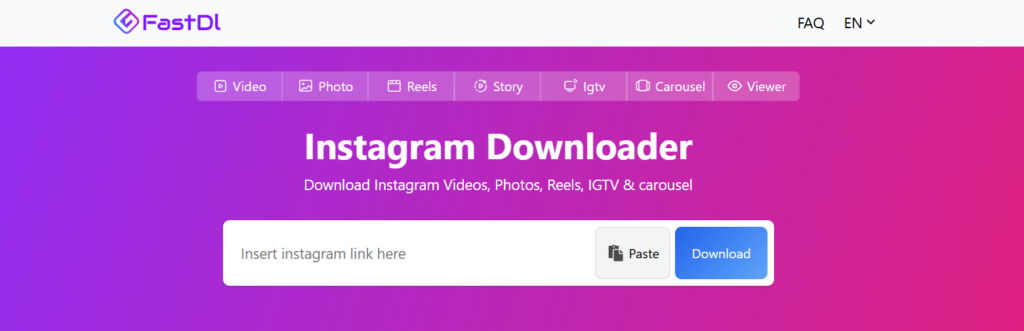FastDL is one of the best Instagram downloader. You can download video, reels, stories and igtv. FastDL supports in almost all devices using browser.