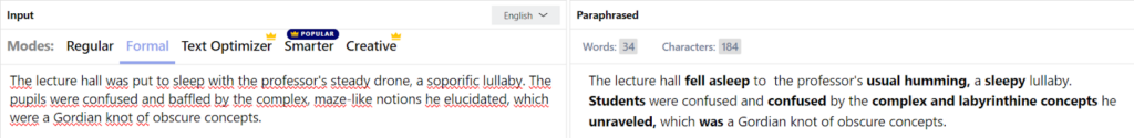 We had a text with some difficult and boring words. We rephrased it through an online paraphrasing tool. The tool immediately made our input simple and engaging to read.